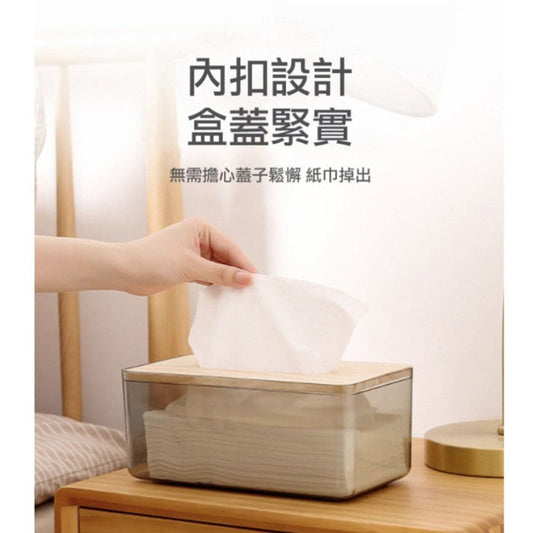 無印風簡約半透紙巾盒 10cm x 13cm x 23cm 質感竹木面紙盒 歐式簡約面紙盒 竹木蓋衛生紙盒 透明原木紙巾盒 簡約木蓋面紙盒 桌上收納 質感面紙盒
