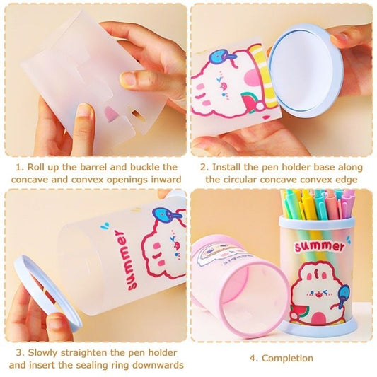 圓形摺疊筆筒桌面收納桶 筆筒收納盒 文具收納筆桶 桌面收納盒 卡通創意圓形折疊筆筒(兩隻老虎)