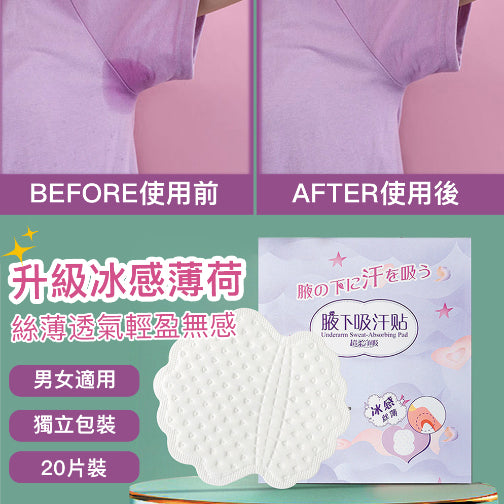 【20片】超薄腋下吸汗貼 除味消臭防尷尬 一盒20片
