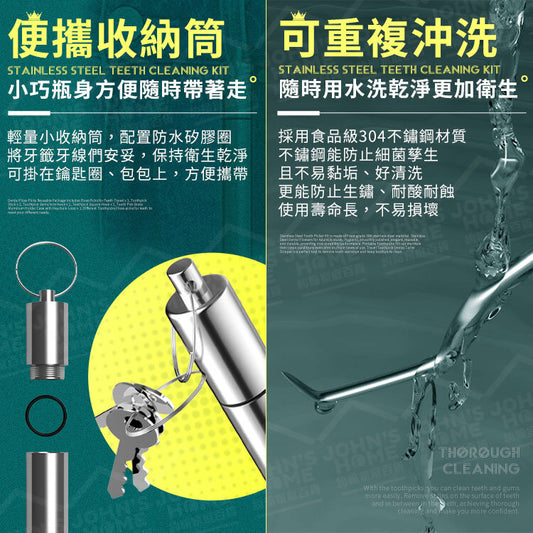 不鏽鋼牙線7件套 輕量便攜 不鏽鋼牙籤 牙線棒 牙線 牙籤 剔牙 牙縫勾針 牙齒清潔 牙線及配件