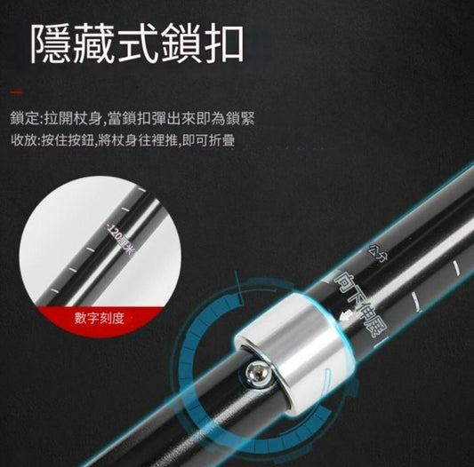 超輕鋁合金 折疊伸縮越野行山杖 登山杖老年人手杖 行山杖 登山杖 折疊行山杖(1支裝黑色)