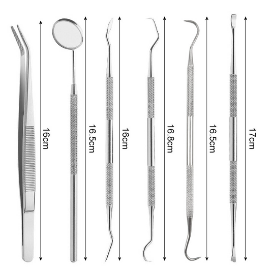 [6件套裝] 不銹鋼牙科工具 口腔護理 牙醫工具套裝 內窺鏡 剔牙 去牙結石牙垢 牙線及配件