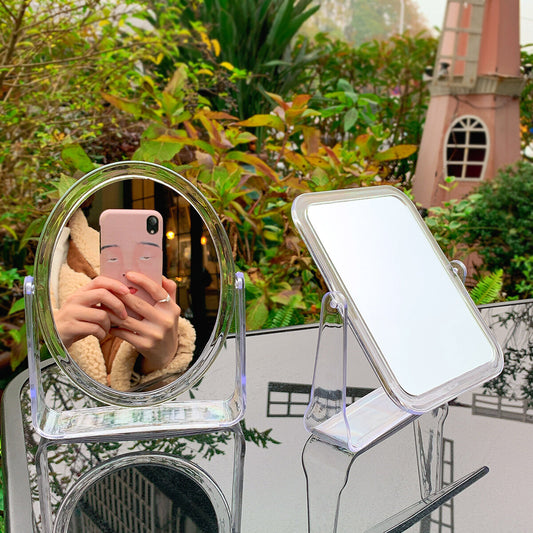 透明雙面化妝鏡 簡約 雙面化妝鏡 桌上化妝鏡 可翻轉 北歐風 梳化小鏡子 韓版透明可翻轉鏡子簡約尚化妝鏡創意可愛桌面雙面台式梳妝鏡子 座檯鏡