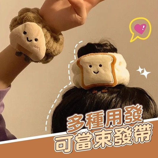 可愛洗臉手腕帶 束髮帶 卡通手環 防濕腕帶 洗臉腕帶 洗臉束髮帶 珊瑚絨手腕帶 簡約毛絨卡通束髮帶(麵包多士)