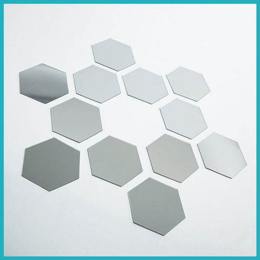 12片裝-迷你六角形鏡面貼紙 高清- 可DIY 可拆卸 化妝 書桌 鏡