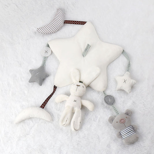 兒玩具五角星毛絨兔子熊旋轉音樂床頭鈴八音盒床鈴
