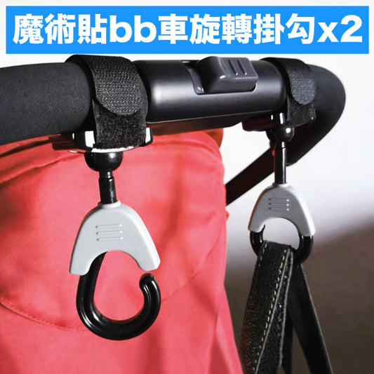 魔術貼安全扣bb車旋轉掛勾(2枚入) 功能扣固定扣 掛鉤防滑扣嬰兒車功能扣承重掛鈎嬰兒用品嬰兒扶手把握多功能掛鉤
