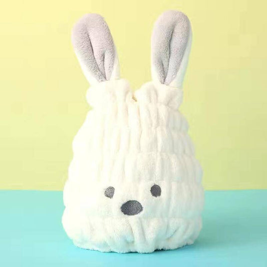 兔耳兒童乾髮帽 自然乾髮不傷頭髮皮膚 3倍吸水速乾 小孩小朋友小童適用 珊瑚絨 洗髮洗頭速乾毛巾 乾髮帽 吸水帽 包頭巾 可愛頭巾 毛巾 浴帽浴帽 鬆緊帶強彈力帽 (白色)