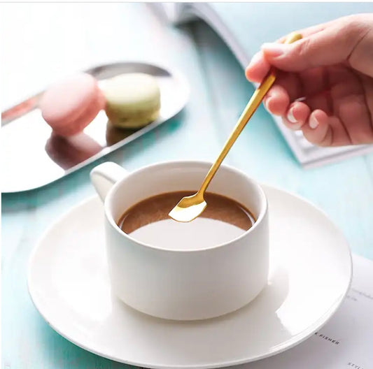 304不鏽鋼長柄方頭湯匙 方頭攪拌棒 鍍金攪拌勺 咖啡勺 攪拌棒 便攜湯匙 湯匙