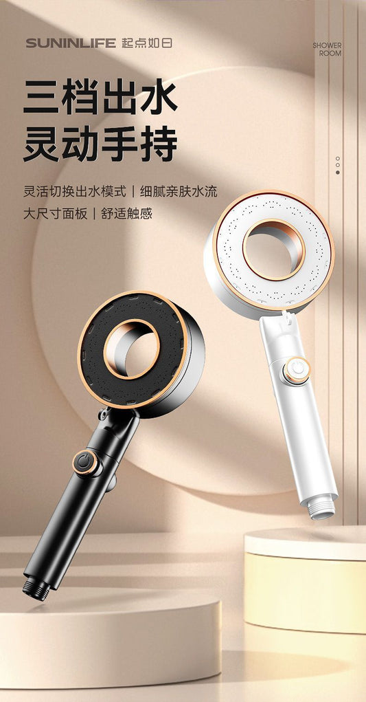 [黑色]環形花灑 增壓淋浴 花灑噴頭 超強加壓 衛生間 洗澡 家用熱水器