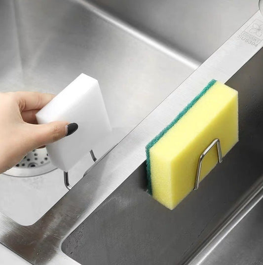 2件不銹鋼百潔布架 海棉瀝水架 廚房無痕掛壁式海綿清潔球海棉架 清潔收納架 免打孔鋼絲球置物架 廚房用品浴室用品