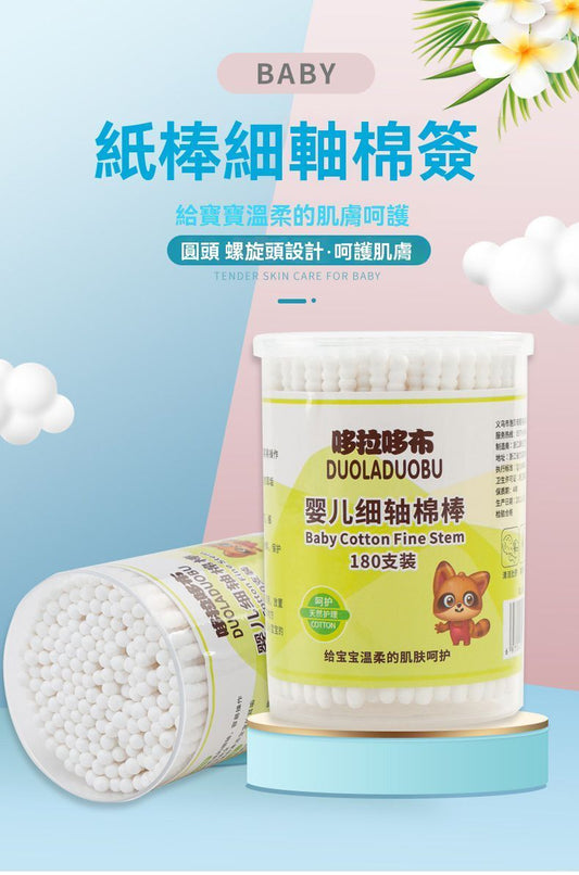 【180支】嬰兒紙棉簽圓頭 螺旋棉花棒 雙頭用 耳仔鼻孔清潔