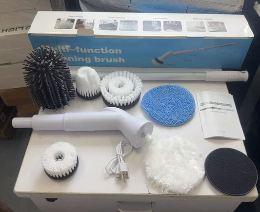無線多功能電動清潔刷長柄自動伸縮清潔刷子多功能電動清潔刷-6個刷頭