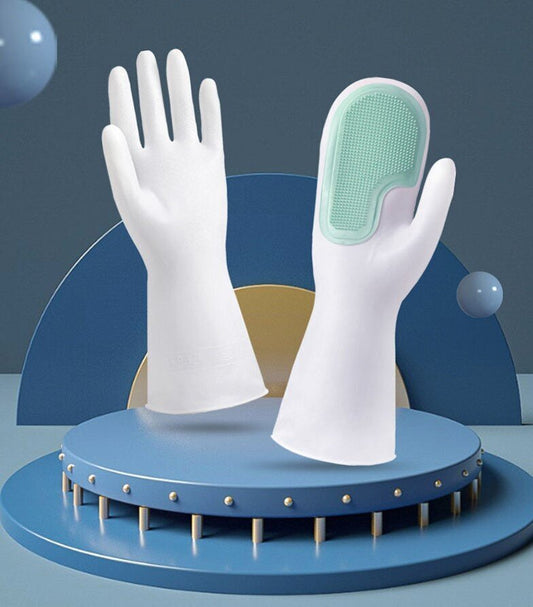 多功能洗碗刷手套 家務洗碗清潔隔熱 手套刷頭二合一 魔術刷洗碗手套 預防主婦手保護手掌綿密泡泡刷碗神器 去污清潔防滑 廚房防水耐用百潔布洗碗刷(綠色)