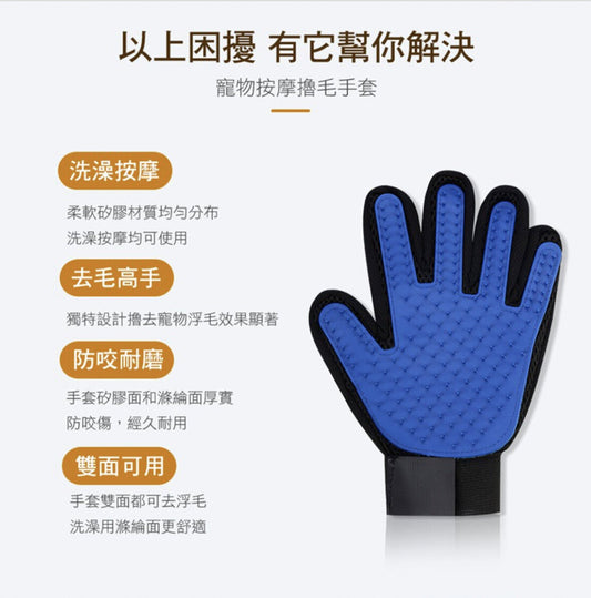 寵物除毛手套 矽膠網面透氣舒適 貓貓狗狗除毛 寵物工具 愛惜動物 寵物按摩 寵物美容 寵物用品(右手藍色) 梳類