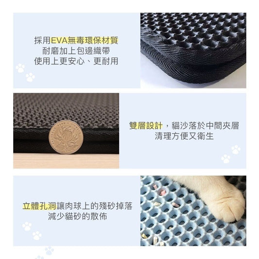 雙層無毒貓砂墊 蜂巢狀砂孔貓砂墊 貓砂地墊 貓砂踏墊 EVA無毒材質雙層寵物地墊(黑色/40*60CM)