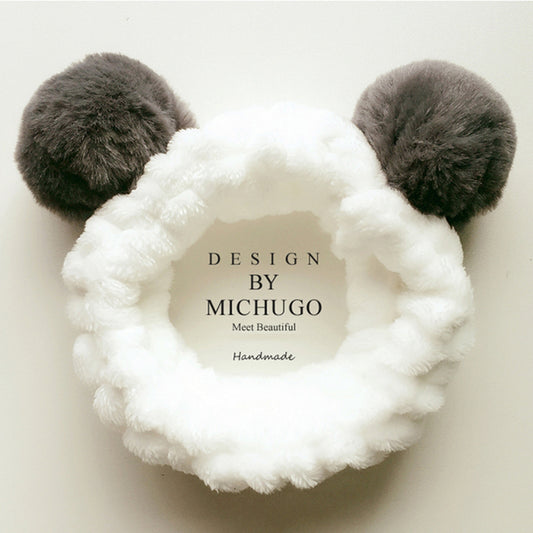 日式熊貓洗臉束髮帶 可愛少女簡約化妝頭帶 面膜束髮帶 絨布甜美球球髮箍髮飾 洗面洗漱敷臉護膚防滑頭套