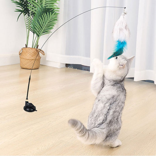 吸盤逗貓棒貓玩具伸縮桿可替換羽毛鈴鐺長桿貓咪自嗨寵物用品 波點白
