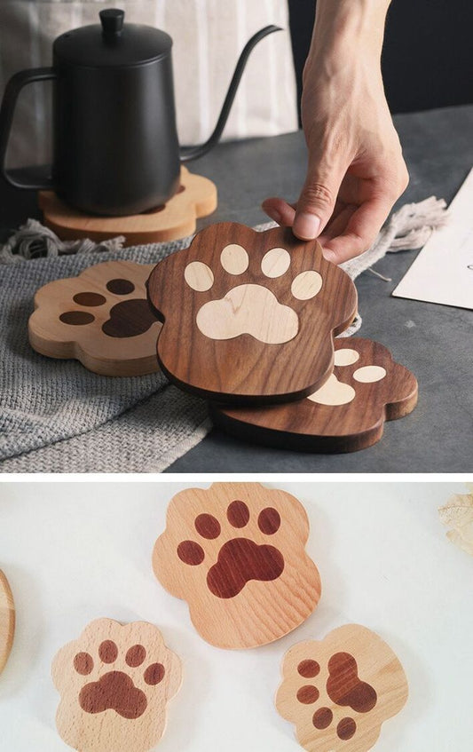 森系實木肉球杯墊|優質櫸木貓爪家用餐桌墊 廚房鍋墊|可水洗防燙 可愛治癒日系木質咖啡杯茶杯冬日暖飲隔熱墊(淺木色)