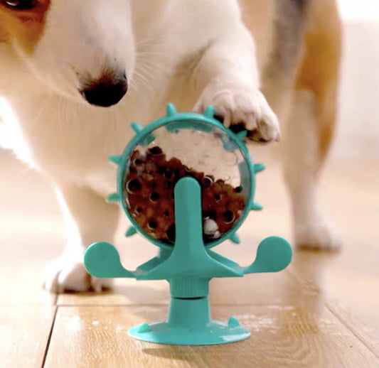 貓咪喂食器 貓狗玩具逗貓慢食漏食器風車轉盤 智力 餵食狗糧貓糧