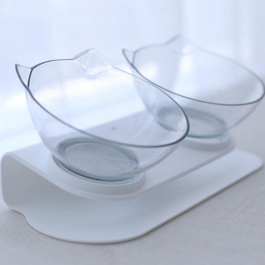 透明寵物碗-雙碗保護頸椎 貓狗餵食套裝-寵物雙碗連托架