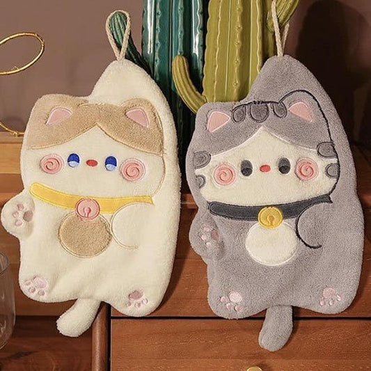 可掛式擦手毛巾 擦手布 吸水抹布 可愛擦手巾 超強吸水加厚擦手帕 洗手毛巾 廚房抹手布(咖奶貓)
