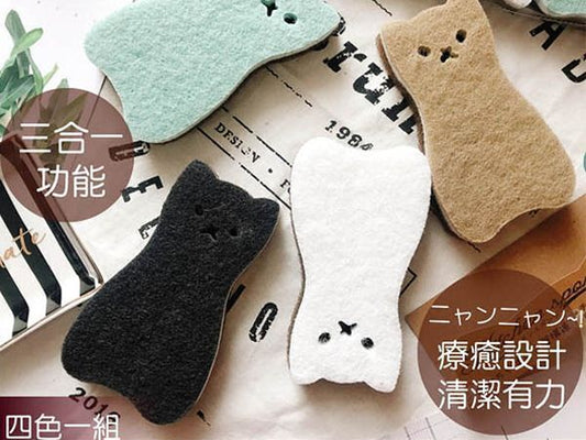【4件套】三層清潔構造貓咪百潔布|雙面仿絲瓜絡海棉擦 快乾不藏菌 柔軟不傷鍋 灶台磁磚餐具鍋具清潔 廚房洗碗 廁所浴室洗手間去污泡沫魔力擦(各色一件)