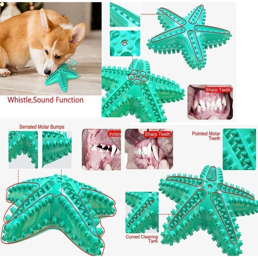 多功能星星型發聲潔齒磨牙狗玩具-藍色 /耐咬寵物玩具 狗牙刷狗狗磨牙潔齒棒漏食器耐啃咬狗互動玩具
