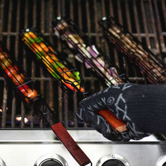 BBQ長柄燒烤網籃 燒烤架 鐵網烤肉夾 腸仔 熱狗 三色椒 燒烤籠