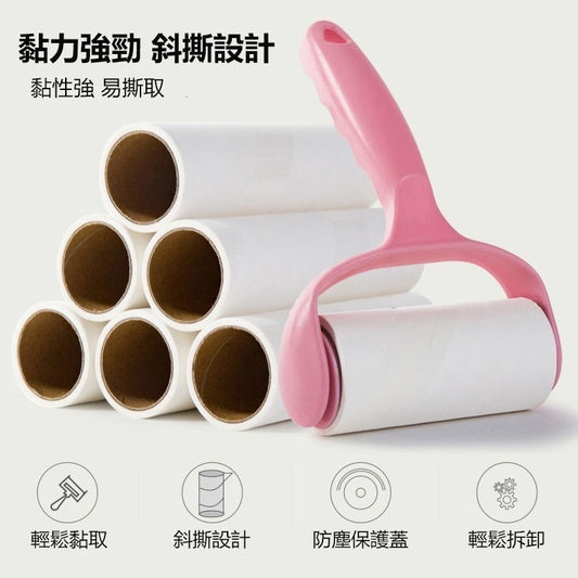 可撕式滾筒黏毛器 寵物黏毛器 滾筒黏毛器 滾筒除塵器 黏塵紙 粘毛神器(1個手柄+1捲紙/40撕/帶蓋) 衣物除毛器