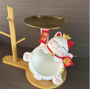 招財貓家居擺件 玄關鑰匙收納 前台開業裝飾 喬遷 新居禮品 托盤貓 -托盤大肚收納招財貓+葫蘆木架