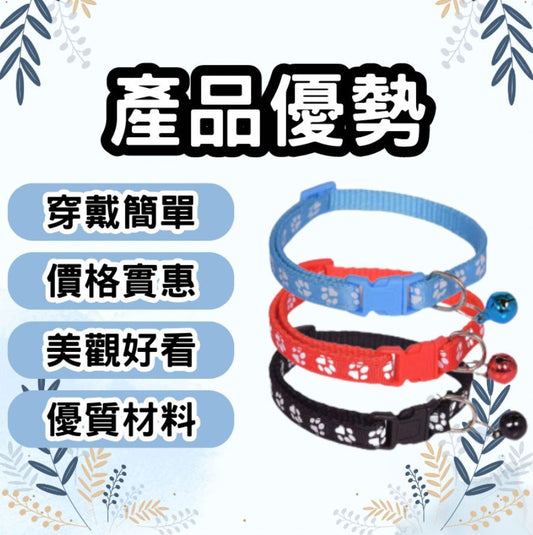 貓咪項圈 鈴鐺項圈 寵物項圈 狗項圈 爪印項圈 多色項圈 貓項圈 項圈 鈴鐺 貓咪用品 狗用品 天藍色