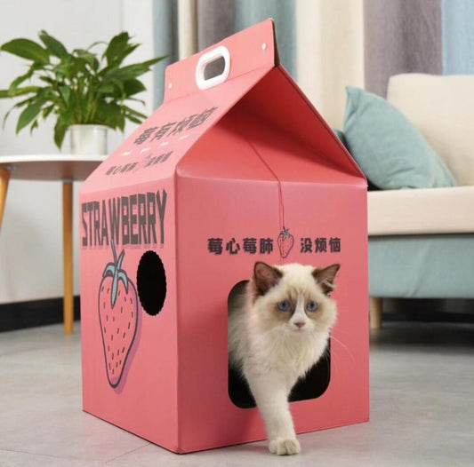 士多啤利牛奶盒貓屋 貓房子屋窩抓板 有貓商店街 造型屋 貓抓屋 貓爪 貓别墅 纸屋 纸箱 貓抓板 房子 貓磨爪 貓咪玩具 瓦楞纸貓屋 寵物屋 寵物房 寵物別墅 猫星屋