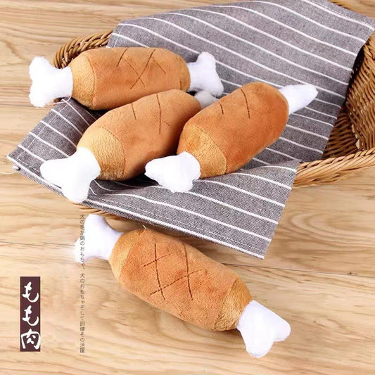 寵物發聲毛絨雞腿玩具 可愛雙骨頭雞腿毛絨玩具發聲內含BB器 寵物狗狗貓咪耐咬磨牙陪睡安撫玩具用品(3 個)