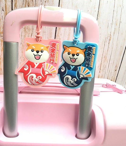 原創文創萌寵卡通柴犬行李牌 日式和風托運防丟失 行李牌 藍色+和服柴犬-粉色 2個一套 行李牌