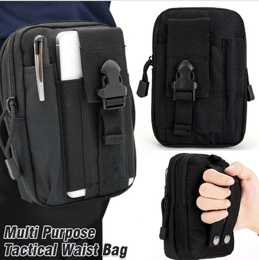 黑色多功能掛包 戶外戰術皮帶腰包 運動腰包 手機袋 [平行進口]