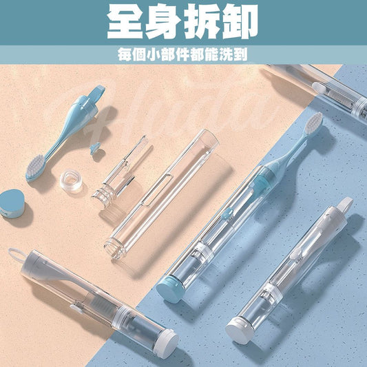 旅行牙刷套裝 便攜式牙刷套裝 旅行牙刷組 便攜牙刷 一體式牙膏牙刷 便攜式牙刷牙膏 (天藍色)