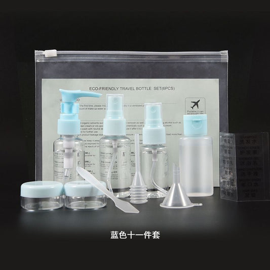 11件旅行分裝瓶組 分裝瓶 按壓式軟瓶 化妝水 乳液 分裝罐 空瓶 藍色 分裝容器 噴霧瓶
