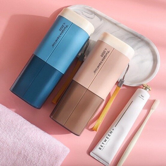 旅行分格牙刷洗漱套裝 牙刷收納盒 牙膏收納盒 毛巾收納盒 旅行組牙刷杯套 漱口杯 旅行牙刷盒 洗漱杯 旅行牙刷收納 便攜式情侶套裝洗漱用品(北歐粉/不連牙刷牙膏毛巾)