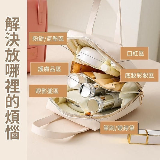 貝殼手提化妝袋 大容量化妝包 化妝品收納袋 洗漱袋 旅行化妝包 盥洗包 手提細袋 大容量化妝袋 (奶杏白)