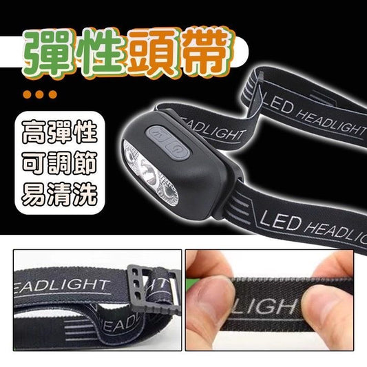 智能感應USB充電頭燈 戶外USB釣魚頭燈 LED頭燈 登山頭燈 防水頭燈 露營頭燈(黑色感應款/送隨機款式頭帶)