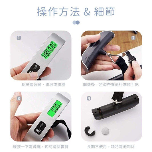 手提便攜旅行行李電子秤 手提電子秤 旅行必備 不怕超重 電子行李秤 手提秤 迷你秤 吊秤 旅行秤 行李秤 電子秤 背囊秤 有預算 行李電子秤(織帶綠光款) 旅行配件