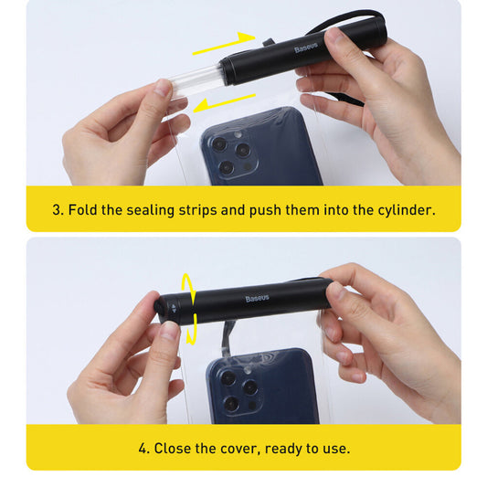 黑色 - 新款 手機防水套 觸控靈敏游泳防水袋 圓筒滑蓋手機潛水防水包 大號掛繩掛脖沙灘防水套 7.2寸以下手機適用