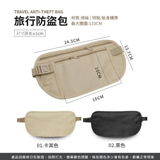 旅行防盜包 貼身腰包 護照包 隱形腰包 防盜 防窺 貼身小包 運動腰包 單車包 貼身腰包 旅行腰包 卡其色