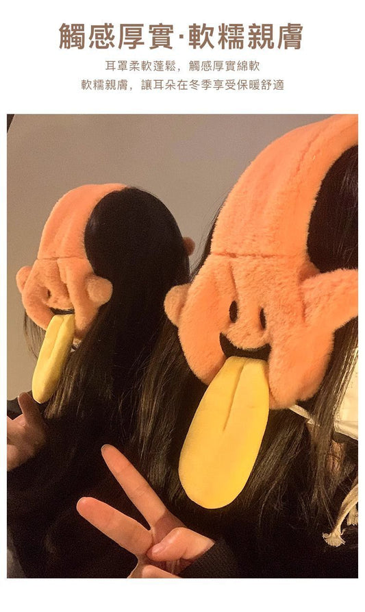 可愛保暖!日系幽靈仔保暖耳罩|防風密絨 柔軟舒適 可愛搞怪|卡通吐舌毛绒耳罩 女生用秋冬天季保暖護耳套 戶外旅行旅遊騎行 耳包 萬聖節變裝扮裝Cosplay變裝舞會聚會Party派對頭飾飾物飾品(白色