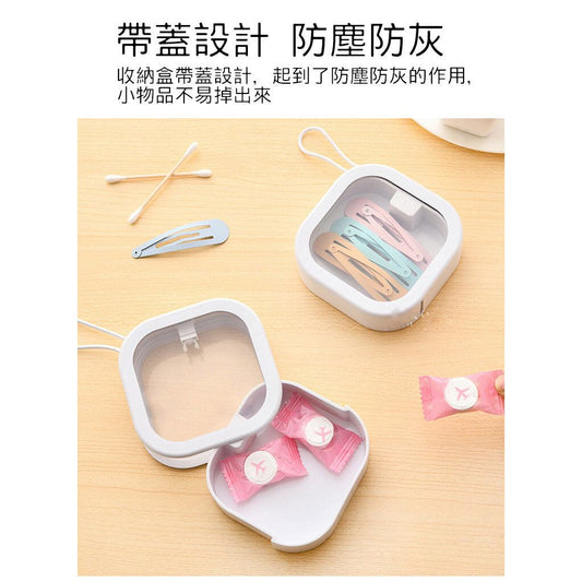 2個 按壓收納盒 小物收納盒 便攜式收納盒 開蓋收納盒 方形收納盒 旅行收納盒 迷你收納盒 飾品收納盒 口袋雜物收納盒 桌面便攜式收納盒(買一送一/白色+粉紅色/共2個) 儲物盒