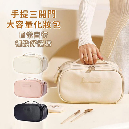 大容量化妝袋 旅行化妝包 化妝品收納包 洗漱包 漱洗包 隨身包 手提包 化妝品收納袋(失焦桃木)