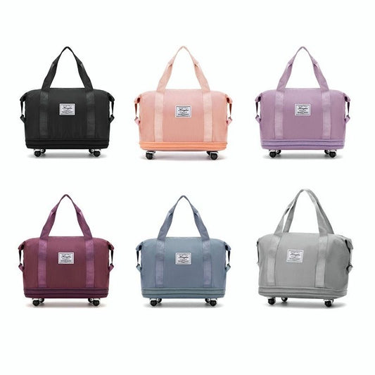 可擴式萬向輪旅行袋 多功能旅行袋 滑輪包 行李袋 擴展旅行包 可摺疊旅行袋 雙層擴展大容量旅行包(淺藍色)