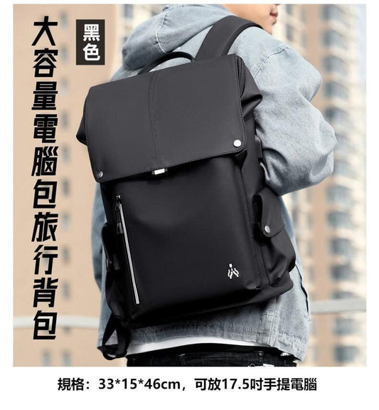 【黑色】大容量簡約電腦包 雙肩包 旅行背包 書包 防潑水背囊 型格背包 運動背囊 商務背囊 戶外背囊 休閒背包