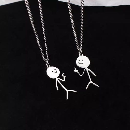 自由組合!火柴人搞怪情侶項鍊(比心x2+中指x2)趣味互動設計 可愛搞笑風格|可自由拼組 搭配創意吊墜|情侶對鍊 男女朋友生日禮物 聖誕節交換禮物 好友閨蜜飾品 旅行飾物 鈦鋼合金項鍊 潮流配件 頸鏈
